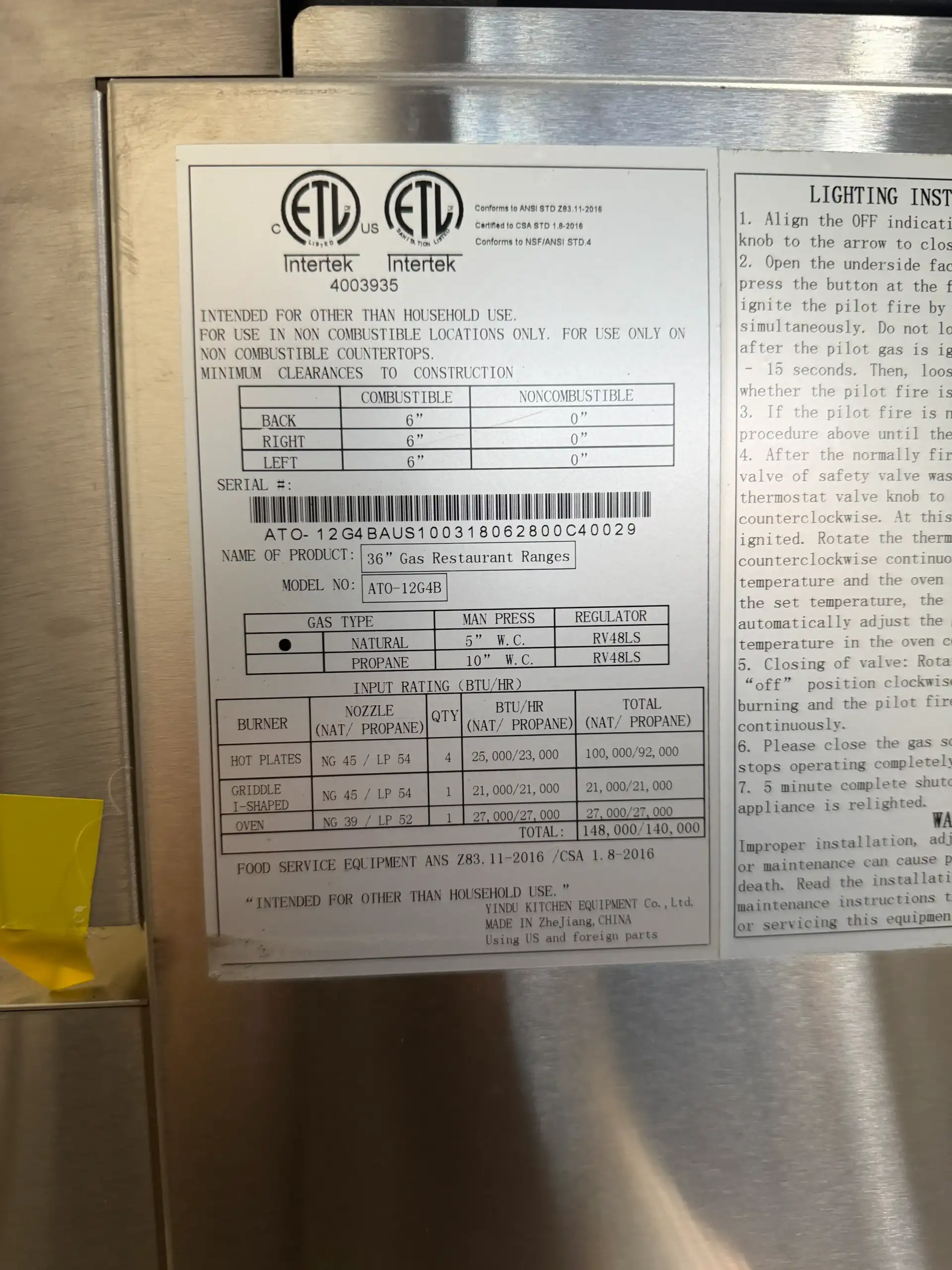 - Capacity & Performance: Four 25,000 BTU burners (Natural Gas) plus a 12” griddle for versatile cooking power