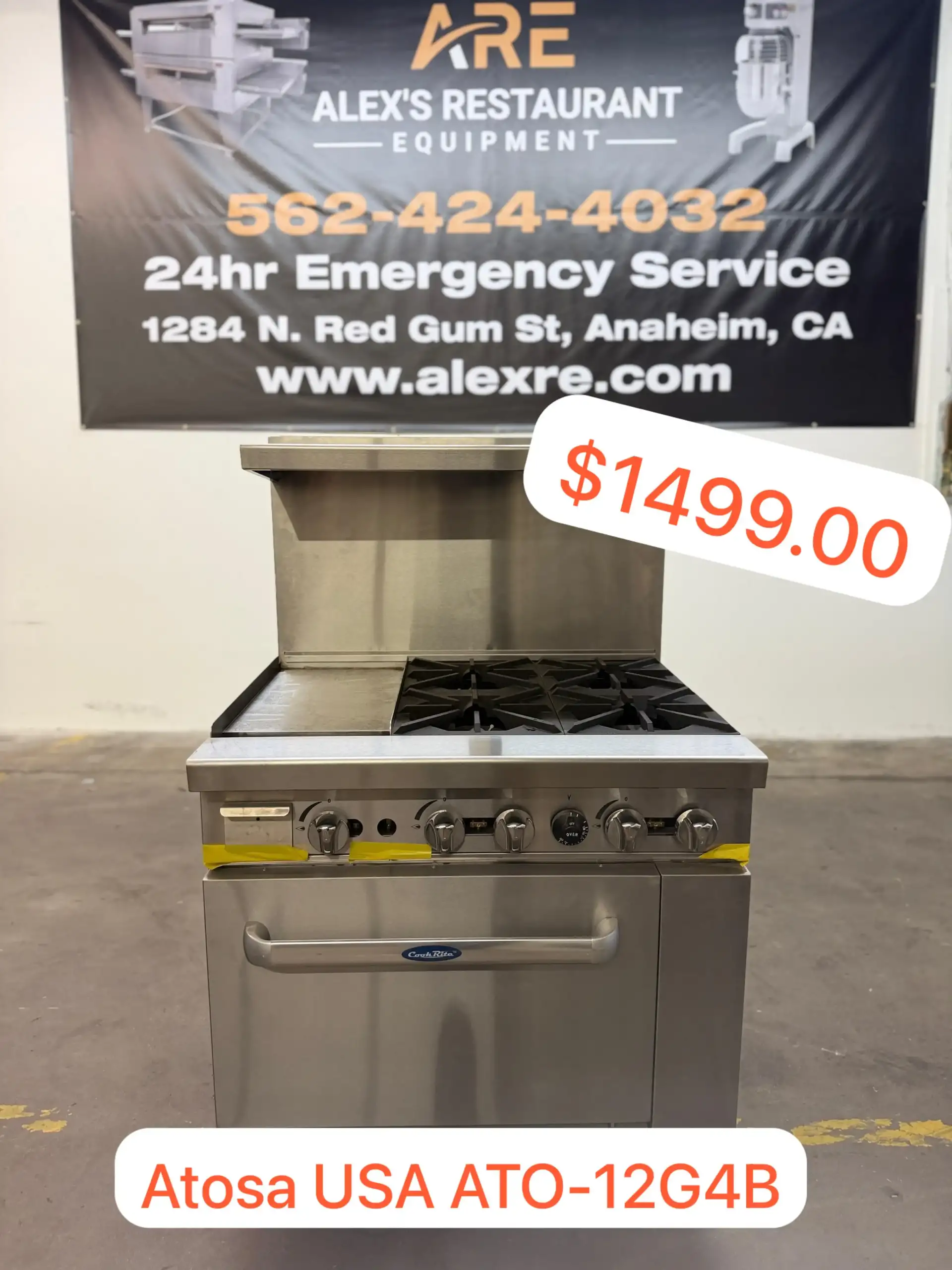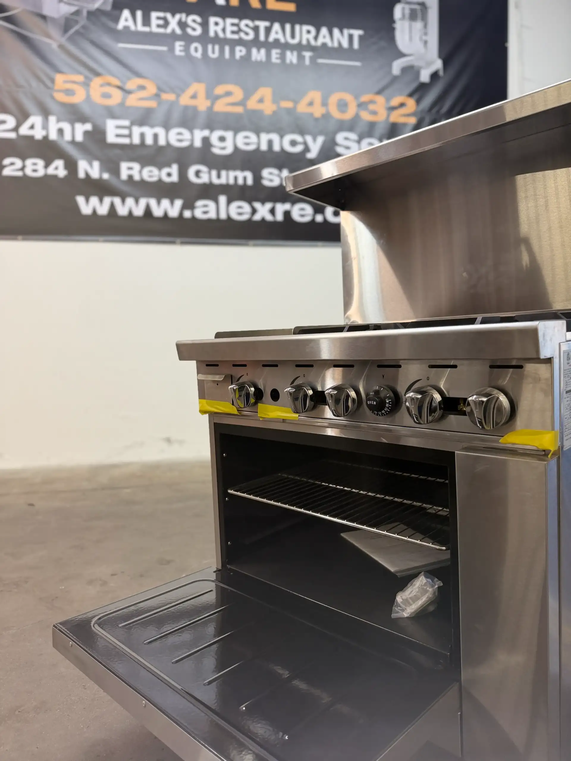 This Atosa USA ATO-12G4B 36” Gas Restaurant Range is built for busy commercial kitchens that demand durability, power, and versatility. Featuring four high-output burners and a 12” griddle, plus a full-size oven base, this unit is ideal for restaurants, diners, cafés, catering kitchens, and food trucks looking for consistent daily performance. Brand new and never used, this range is ready for immediate installation and dependable production.